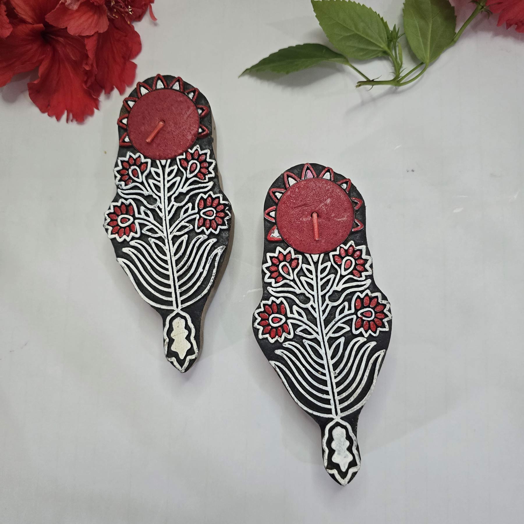 Be the first to review “Hand-Carved Floral Wooden T-Light Holder”