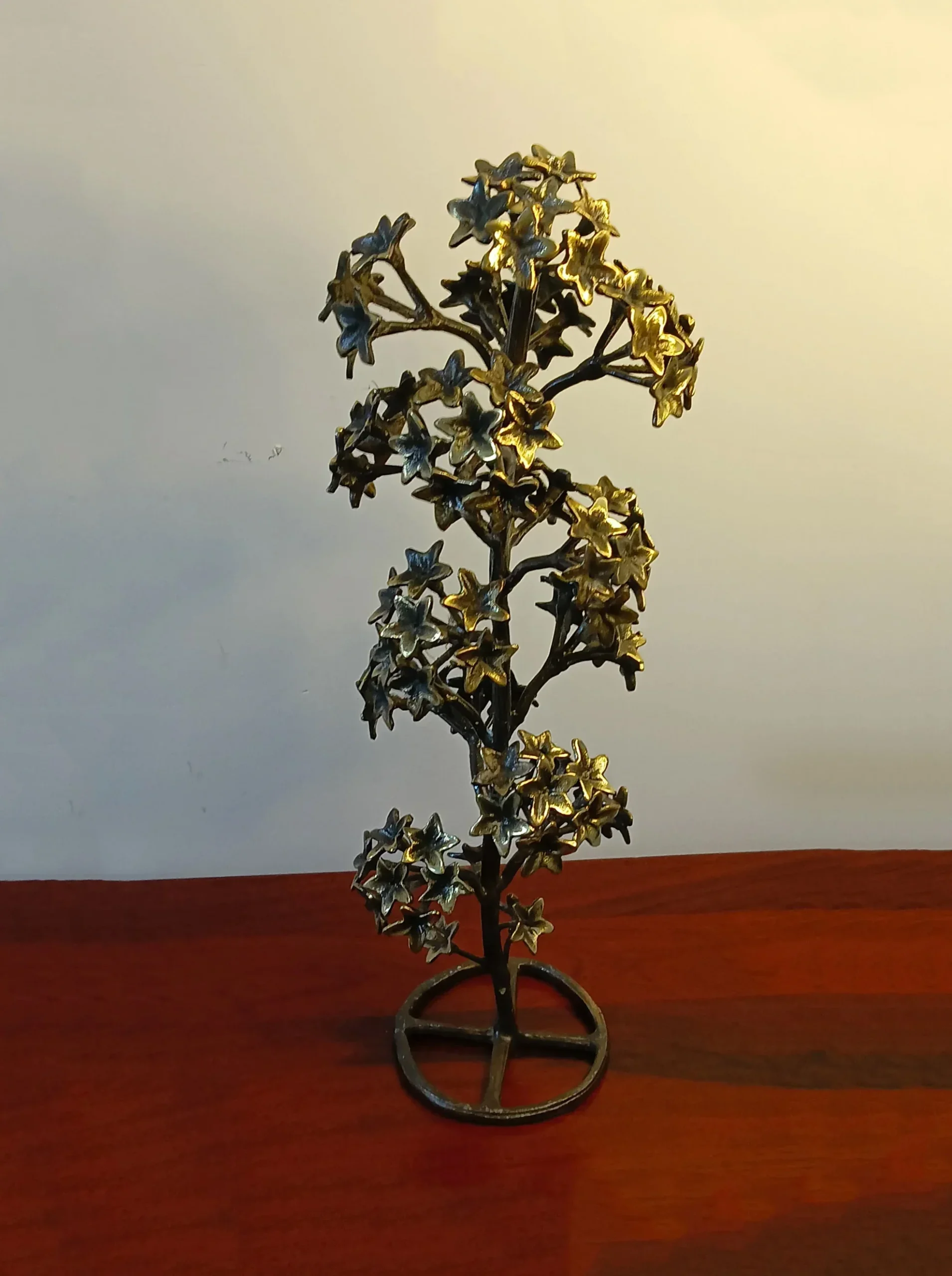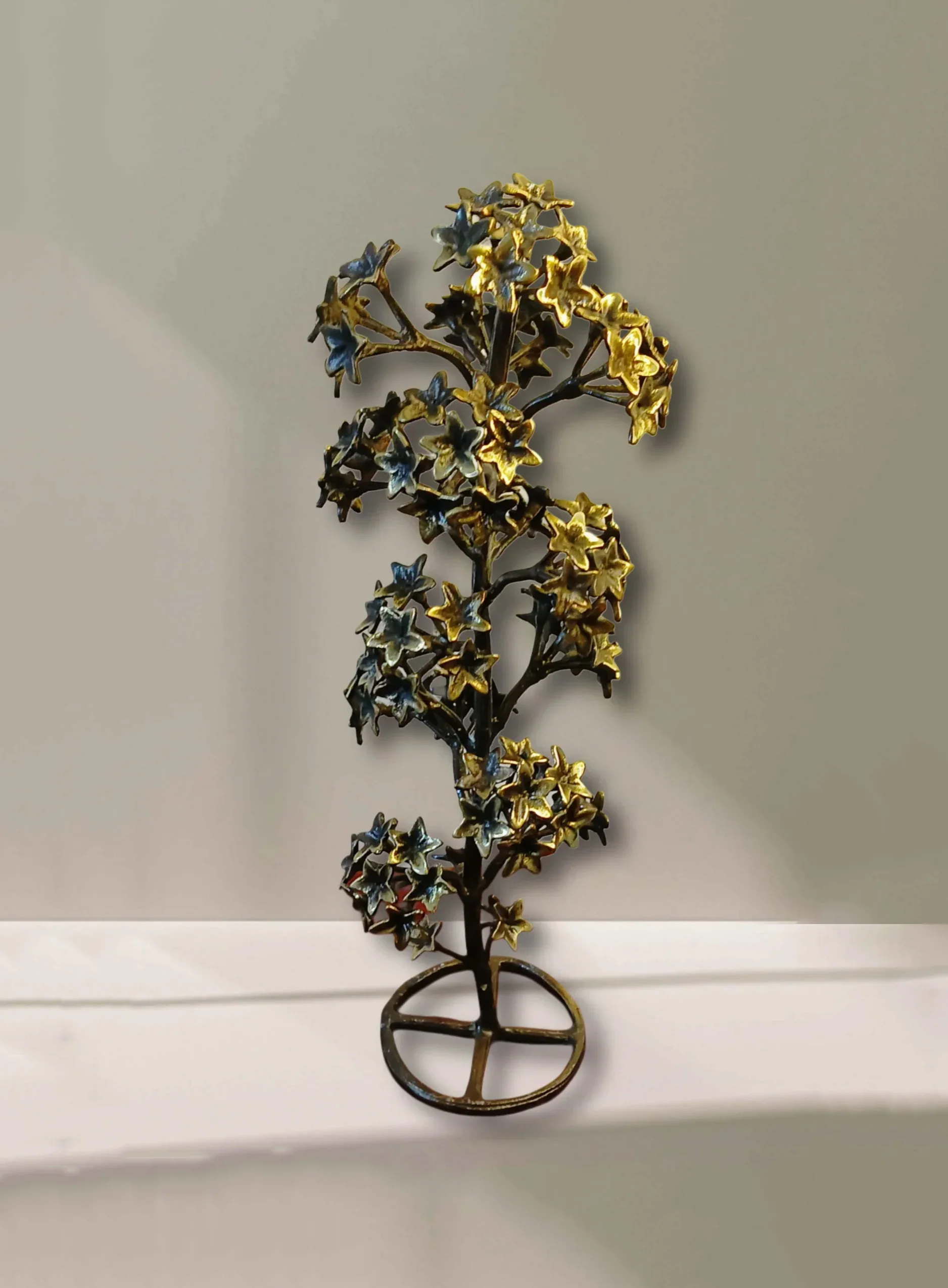 The Pushpavalli Vriksha is a handcrafted brass sculpture that adds elegance and charm to any space. Inspired by India’s flowering trees, this sculpture features clusters of delicate blossoms. Its antique gold and black finish gives it a warm, classic look.